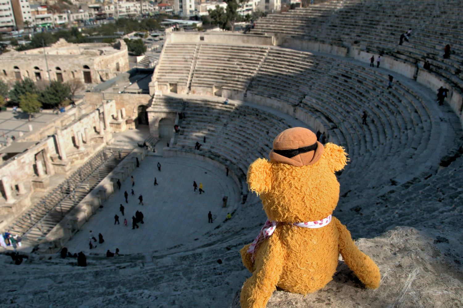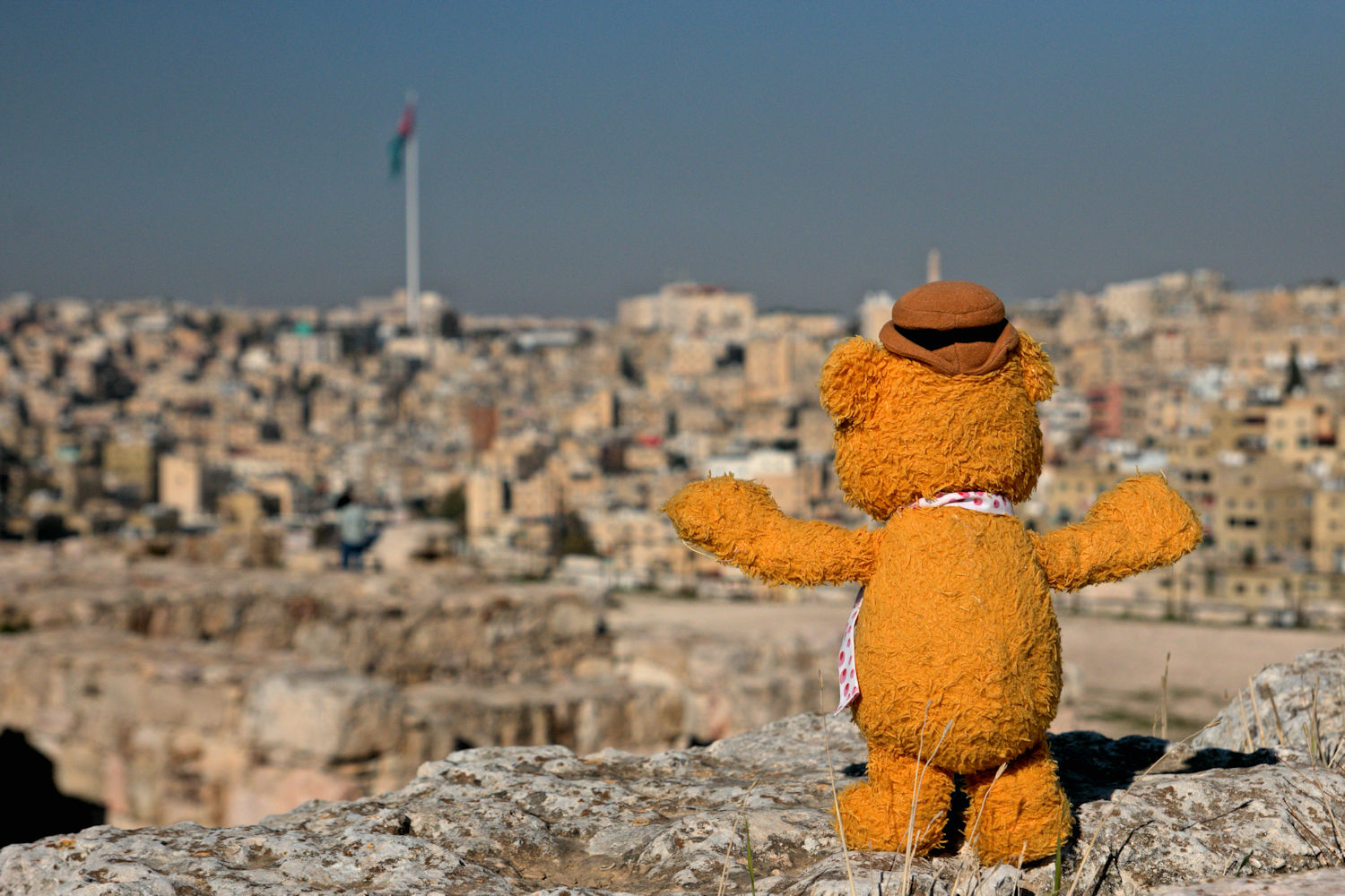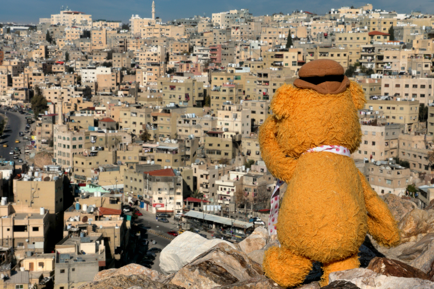 Staying at the hotel however is not an option. He just has to get out and do a bit of sightseeing at least. Even though if it is just to see if things have changed since the previous visit. Spot the differences: Fozzie in Amman